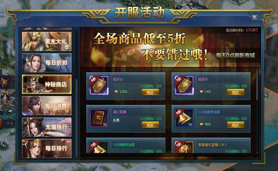 1) 活动期间,每天0点会在神秘商店中刷出各类折扣道具,还能免费购买军牌喔!